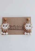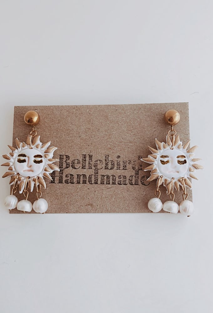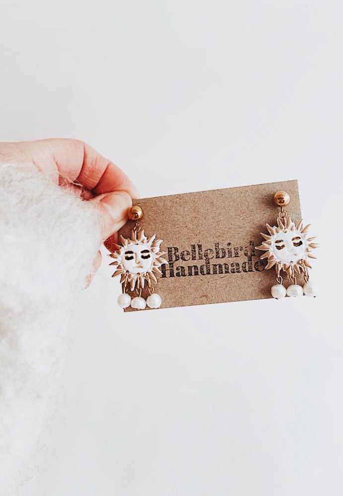 Cute little hand painted smoosh face milky white moons with hanging pearls